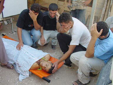 圖:以軍入侵杰寧 打死一名阿克薩烈士旅成員 2002年08月12日 20:39 ![]() 以色列軍隊(duì)8月12日侵入約旦河西岸城鎮(zhèn)杰寧附近的一個村莊,打死了巴勒斯坦民族權(quán)力機(jī)構(gòu)主席阿拉法特領(lǐng)導(dǎo)的法塔赫下屬的阿克薩烈士旅的一名成員。