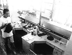 經(jīng)查,該男子曾幾次前往作案地點,第一次出現(xiàn)時身穿一件白色廣告衫,衣領(lǐng)為小V字領(lǐng),廣告衫底部有一黑色寬條紋。作案時犯罪嫌疑人身穿白色圓領(lǐng)廣告衫,胸前有人形圖案,下身穿淺藍(lán)色牛仔褲,戴寬邊金色金屬框架太陽眼鏡,隨身攜帶一黑底紅面尼龍拉鏈折迭包。
