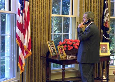中新網(wǎng)北京9月6日消息:據(jù)法新社發(fā)自白宮的消息,美國總統(tǒng)喬治-布什今天打電話給中國、俄羅斯和法國的領(lǐng)導(dǎo)人,就伊拉克問題進行了商談。