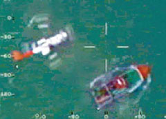 另外,有兩艘船只昨晚也向香港海事處求救。其中一艘載有13名船員的內(nèi)地拖船在香港西南約43海里處遇險﹐另一艘載有16名船員的躉船﹐則在珠海機場外范圍發(fā)現(xiàn)進水。港府飛行服務(wù)隊隨即飛赴現(xiàn)場進行搜救﹐但因天黑及出事海面受到烈風影響海浪太大,直升機一度被迫撤離,拯救行動未能展開。