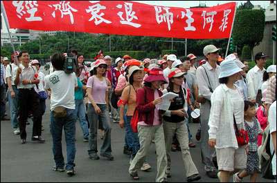 據(jù)了解,這次教師大游行的訴求為“教師要團結(jié),教師要尊嚴(yán),勞動條件要協(xié)商”,具體要求是教師可籌組工會。教師協(xié)會統(tǒng)計,此次參加游行的包括臺北縣市、高雄縣市、臺南縣市、基隆、臺中、彰化、苗栗、南投、新竹、臺東、花蓮、宜蘭、澎湖、金門、連江縣等地區(qū)的教師,加上教師家屬,游行人數(shù)達(dá)十萬以上,募集經(jīng)費一千多萬新臺幣。