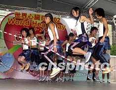 香港娛樂圈眾星9月29日在香港“世界心臟日2002”活動中呼吁市民利用健身強健心臟。中新社圖 任晨鳴 攝