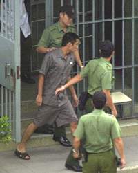 香港大公報(bào)報(bào)道說,一批帶備了長鏡的攝影記者﹐昨晨不約而同抵達(dá)壁屋監(jiān)獄附近﹐背負(fù)沉重的攝影器材﹐攀上一處可以遠(yuǎn)眺監(jiān)獄操場的山頭﹐實(shí)行“守株待兔”。至中午時(shí)分﹐終見到剪了平頭裝的謝霆鋒﹐在多名懲教署人員陪同下到操場散步。