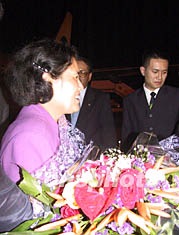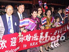 專程從泰王國(guó)飛抵?谟釉(shī)琳通公主的一百多名泰國(guó)海南鄉(xiāng)親,在機(jī)場(chǎng)拉起了寫著泰文與中文的橫幅,揮舞著中國(guó)、泰國(guó)國(guó)旗,在十五的滿月下笑迎詩(shī)琳通公主。