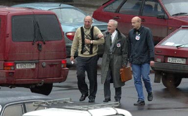 國際紅十字會代表將一名患病人質(zhì)(左一)帶出莫斯科劇院