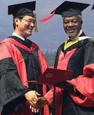 中新網(wǎng)11月2日電 聯(lián)合國秘書長科菲·安南10月14日在位于中國杭州的浙江大學(xué)接受名譽(yù)博士學(xué)位,并發(fā)表演講。上海新民周刊在第200期中全文刊出安南此次演講的全文,F(xiàn)引錄如下——