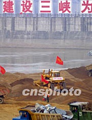長江三峽導流明渠截流昨天進入強進占的第二天。由于龍口不斷縮小,水流速度加快,導流明渠截流的難度開始加大。龍口收口的關鍵物質(zhì)———重達30噸的混凝土四方體石塊,也已經(jīng)大量投入使用。
