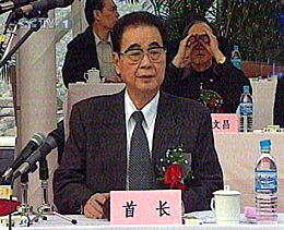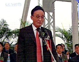 國務(wù)院副總理吳邦國宣布導流明渠截流合龍成功后,全國人大委員長李鵬發(fā)表了重要講話。