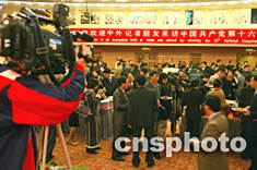 中新社北京十一月六日電(記者張朔)中國共產(chǎn)黨第十六次全國代表大會新聞中心今晚在北京梅地亞賓館舉行酒會,歡迎采訪本次大會的中外記者。