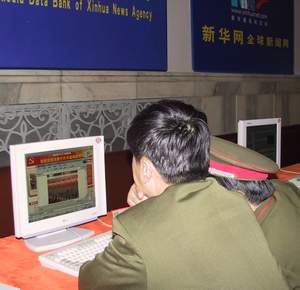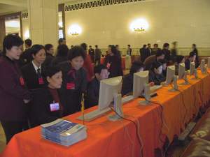 舉世矚目的中共十六大今天上午隆重揭幕,步入北京人民大會(huì)堂的代表們發(fā)現(xiàn),在人民大會(huì)堂東大廳南側(cè),新增了一排專(zhuān)線(xiàn)上網(wǎng)電腦。輕點(diǎn)鼠標(biāo),官方新華社所屬的新華網(wǎng)“中共十六大”實(shí)時(shí)報(bào)道網(wǎng)頁(yè)就出現(xiàn)在人們眼前。