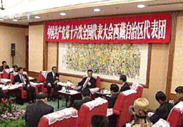中新社北京十一月八日電 胡錦濤今天下午在西藏代表團(tuán)討論時(shí)指出,十六大報(bào)告是我們黨在新世紀(jì)新階段的政治宣言,是全面建設(shè)小康社會(huì)、加快推進(jìn)社會(huì)主義現(xiàn)代化的行動(dòng)指南,是一篇馬克思主義的綱領(lǐng)性文獻(xiàn)。