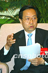 中國共產(chǎn)黨第十六次全國代表大會九日繼續(xù)就江澤民總書記的報告進行分組討論。圖為中國石化集團總經(jīng)理李毅中代表在會上發(fā)言。作者:毛建軍