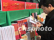 “十六大”期間,北京圖書大廈專辟“十六大”百部重點圖書專柜,十余米的書架前購買者絡繹不絕。作者:廖文靜