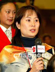 中共中央對(duì)外宣傳辦公室十日在北京舉行中共十六大中外記者招待會(huì),圖為香港女記者正在提問(wèn)。作者:毛建軍