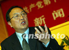 中共十六大代表、聯(lián)想集團董事局主席柳傳志十一日晚在十六大新聞中心接受中外記者訪問。作者:毛建軍