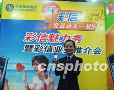 海南移動(dòng)公司12日在此間舉行彩信業(yè)余推介會(huì),數(shù)百名推崇移動(dòng)電話個(gè)性化的用戶現(xiàn)場(chǎng)觀摩了彩信新功能,海南移動(dòng)電話進(jìn)入彩信新時(shí)代。圖為演示現(xiàn)場(chǎng)移動(dòng)公司工作人員介紹彩信的使用方法和特點(diǎn)。作者:王辛莉