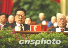 喬石與劉華清在主席臺(tái)就坐。