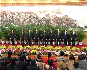 中新網(wǎng)11月15日電(記者 張朔)在剛剛結(jié)束的中國共產(chǎn)黨十六屆一中全會上,胡錦濤、吳邦國、溫家寶、賈慶林、曾慶紅、黃菊、吳官正、李長春、羅干等九人當(dāng)選為新一屆中共中央政治局常委。