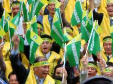 中新網(wǎng)11月18日電 臺(tái)灣數(shù)百名農(nóng)漁會(huì)代表今日下午前往農(nóng)訓(xùn)協(xié)會(huì)舉行“1123與農(nóng)共生團(tuán)結(jié)大游行”誓師大會(huì),并以行動(dòng)表達(dá)對(duì)當(dāng)局以改革之名意圖“消滅”農(nóng)漁會(huì)的高度不滿,李登輝則到場(chǎng)呼吁農(nóng)漁民取消游行,不過全國(guó)農(nóng)漁會(huì)自救會(huì)強(qiáng)調(diào):“不管怎樣,游行照常舉行!”