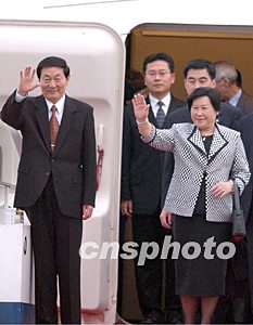 中國(guó)國(guó)務(wù)院總理朱镕基和夫人勞安,11月18日下午乘坐專機(jī)抵達(dá)香港參加“第十六屆世界會(huì)計(jì)師大會(huì)”。