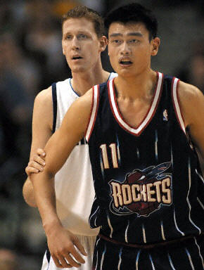 中新網(wǎng)11月22日電 今天,在休斯頓火箭隊與達(dá)拉斯小牛隊的較量中,雖然沒能幫助球隊獲勝,但是“狀元秀”姚明再次成為焦點(diǎn)人物:他在一場“長人對決”中占據(jù)了上風(fēng),壓倒了“NBA第一巨人”小牛隊的肖恩-布拉德利,甚至有一次在諾維斯基和布拉德利的聯(lián)合夾防下重扣得分,技驚四座。