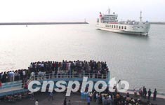 記者看到,當下午四點十分龐大的粵海鐵一號緩緩得開進南港港池的時候,一抹陽光緩緩地照射在平靜的港灣,等候在碼頭上的數(shù)千名海南百姓發(fā)出了熱情的歡呼聲……海南八百萬人民的跨海夢就要圓了。