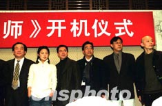 圖為該劇導(dǎo)演陳逸飛和演員姜文、葛優(yōu)、周韻在開機儀式上。