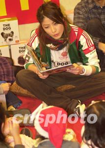 歌星陳慧琳11月29日在香港出席“麥當(dāng)勞抱抱大頭狗”愛心慈善活動,陳慧琳為出席活動的小朋友講故事,其形象健康深受小朋友歡迎。中新社傳真 鄧慶樂 攝