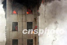 四日上午,湖南省公安系統(tǒng)舉行該省首次大規(guī)模多警種合成、模擬實戰(zhàn)反恐演習。圖為防生化處置實戰(zhàn)演練中,“恐怖分子”在某大樓施放毒氣并設置爆炸裝置,引發(fā)大火,消防官兵們正奮力解救大樓內(nèi)的“被困群眾”。作者:白祖偕