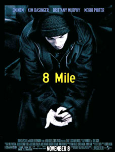 與一般音樂片不同的是,這部由前《洛城機(jī)密》導(dǎo)演柯蒂斯.漢森執(zhí)導(dǎo)的影片不是一部被拉長了的MTV,而是一部嚴(yán)肅的歌手傳記。故事發(fā)生在1995年的美國“汽車城”底特律,“8英里”就是該城一條主干道的名稱,這條街把底特律分成了黑白兩個世界。艾米納姆在電影里扮演了一個名叫吉米的白人說唱樂手。影片一開始,吉米準(zhǔn)備上臺參加一個說唱歌手比賽,卻緊張地在后臺廁所里大吐特吐。當(dāng)鏡頭終于隨著吉米來到舞臺上時,觀眾們立刻就會明白吉米為什么那么緊張了:臺下黑壓壓一片全是黑人!和吉米叫板的也是一個老黑,他一開口就咄咄逼人:“你是白人這沒什么,可你一拿起話筒就是個傻×了!”一句話就點(diǎn)明了主題:說唱樂一直都是美國城市黑人的民間音樂,你一個白人瞎起什么哄?