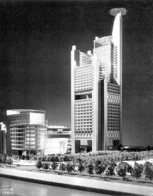 據(jù)介紹,綜合業(yè)務(wù)大樓建筑面積7.5萬平方米,地上41層,地下3層。外觀設(shè)計是一條龍圍繞著200米高的主樓盤旋而上,表達(dá)“向上和發(fā)展”的意味,大樓內(nèi)部則設(shè)計成了開放式的大型中廳布局,設(shè)有演播室、信息網(wǎng)絡(luò)中心、節(jié)目制作中心、編輯辦公中心等。4萬多平方米的多功能演播中心具備完成綜合性文藝節(jié)目的演播、錄制和直播功能。這兩座大樓和生活服務(wù)中心大樓圍合成的開闊空間設(shè)計成了一個媒體廣場,可以進(jìn)行各類文藝演出。