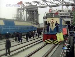 粵海鐵路此次重載聯(lián)調(diào)試驗是從12月11號開始的,首先在瓊州海峽北岸的北港碼頭進(jìn)行了重載列車的裝船和卸船試驗,取得了圓滿成功。昨天開始,粵海鐵一號火車渡輪裝載著兩列總重超過700噸的鋼軌專列和兩臺重達(dá)138噸的機車正式開始跨海航行試驗,經(jīng)過44分鐘的航行,順利抵達(dá)南港碼頭。