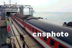 12月15日6時35分,隨著“粵海鐵一號”緩緩?fù)?课挥诤D虾?诘幕浐hF路南港碼頭,中國第一列跨海旅客列車成功橫渡瓊洲海峽。聯(lián)合調(diào)試組測試后表明各項(xiàng)安全指標(biāo)達(dá)到設(shè)計(jì)要求。圖為旅客列車在北港碼頭駛進(jìn)“粵海鐵一號”船艙時的情景。古月 攝