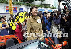 歌星容祖兒12月17日在香港出席一樓盤廣告歌《我的驕傲》MTV記者會。樓盤發(fā)展商為隆重其事出動名車接送。鄧慶樂 攝