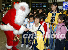 香港機(jī)場(chǎng)為營(yíng)造圣誕節(jié)日氣氛,十二月二十日推出圣誕老人與旅客同樂活動(dòng),成為香港機(jī)場(chǎng)一道節(jié)日風(fēng)景。潘索菲 攝