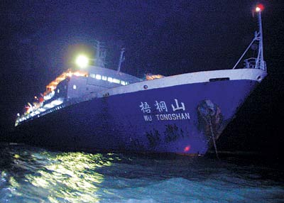 離“梧桐山”輪300多米遠的“德中”號救援船是剛剛執(zhí)行完營救一艘遇險的巴拿馬貨輪的任務后從深圳趕來的!暗轮小碧柎L林金城說,他們現(xiàn)在正在待命,密切關注著“梧桐山”號的情況,一旦形勢緊急就將施以援手。但從目前情況看,“梧桐山”號還不是太危急,有可能不用拖船自己就能開回深圳港。