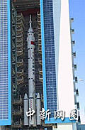 中國酒泉衛(wèi)星發(fā)射中心總裝測試廠房中的"神舟""神箭"組合體