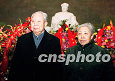 毛澤東的機要秘書張玉鳳(右)等毛澤東生前身邊工作人員和毛澤東的女兒李敏到北京毛主席紀念堂獻花。