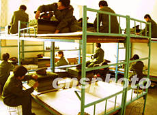 北京郊區(qū)的解放軍某新兵連女兵二十六日在緊張地整理內(nèi)務(wù),以做好元旦前突擊檢查的準(zhǔn)備工作。解放軍指揮機(jī)關(guān)每逢年節(jié)都要對(duì)下屬部隊(duì)進(jìn)行檢查,以確保部隊(duì)秩序井然。作者:宋吉河