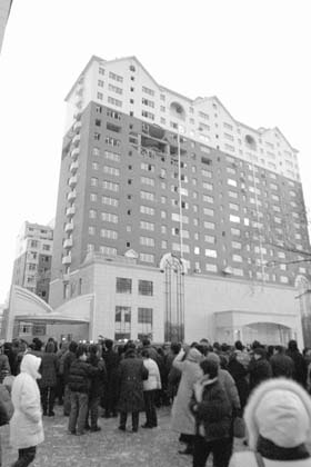 在現(xiàn)場,記者看到一名男子焦急地望著爆炸現(xiàn)場。據(jù)他講,自己是該樓第10層的一戶居民。15時50分左右他回到家中,大約10分鐘后,就聽見樓內(nèi)一聲巨響,瞬間,他看到從樓上崩出了大量的碎石、玻璃和窗框。他家的一側(cè)墻壁也有了裂痕。當他跑出家門時,看見電梯門已被崩到了樓梯口。