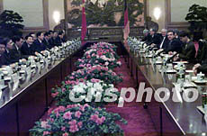 國(guó)務(wù)院總理朱镕基二十九日在北京與德國(guó)總理施羅德舉行會(huì)談。作者:滿會(huì)喬