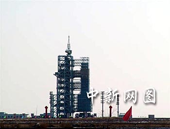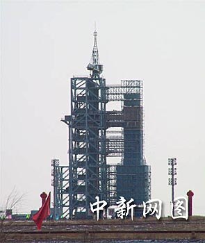 組圖:“神舟”四號飛船發(fā)射前倚立于發(fā)射塔旁