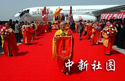 圖:咸陽(yáng)機(jī)場(chǎng)舉行佛指舍利迎歸儀式