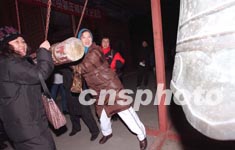 “激越、磅礴、沉雄、嘹亮,帶著恍來天外的神秘感和歷史深處的滄桑感,一聲聲覆蓋百里京華!币晃簧钪O古鐘文化的老專家告訴記者,“一百零八聲鐘聲代表一年十二個月、二十四個節(jié)氣和七十二候,象征著新的一年每時每刻都有美好的祝愿。另外,佛家認為人有一百零八種煩惱,鐘鳴一百零八響,也是為了除盡人間煩惱。”