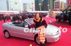 新年伊始,粵東汕頭都市汽車(chē)展開(kāi)幕。風(fēng)姿綽約的汽車(chē)模特站在一款銀灰色的敞蓬跑車(chē)旁,為車(chē)展增添艷麗色彩。作者:王惠存