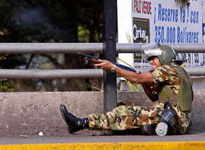 委內(nèi)瑞拉首都加拉維斯再次出現(xiàn)大規(guī)模示威游行,同時(shí)查韋斯總統(tǒng)支持者和反對(duì)者之間發(fā)生暴力沖突。警察向示威者發(fā)射橡皮子彈、施放催淚瓦斯,示威者則投擲石塊、瓶子等回?fù)簟D壳耙延袃扇吮淮蛩,多人受傷?/p>