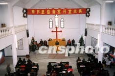 圖:遷建的三峽庫(kù)區(qū)基督教堂開堂