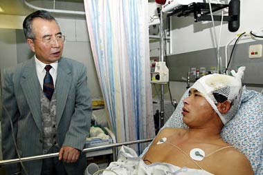 圖:以爆炸案中受傷中國(guó)勞工林金謀返家鄉(xiāng)