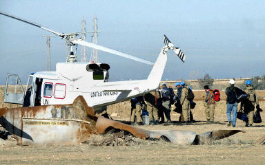 1月7日,聯(lián)合國(guó)核查人員首次使用直升飛機(jī)對(duì)離伊拉克首都巴格達(dá)較遠(yuǎn)的可疑地點(diǎn)進(jìn)行了檢查。