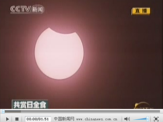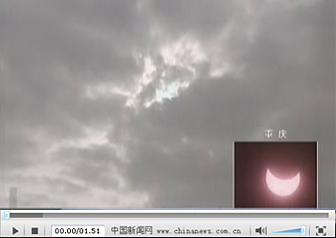 中新網(wǎng)7月22日電 7月22日,500年一遇的日全食奇觀引發(fā)了網(wǎng)絡(luò)上的一次盛大“天文聯(lián)歡”。來自全國(guó)各地的網(wǎng)友自發(fā)組成了“直播團(tuán)隊(duì)”,以網(wǎng)絡(luò)為平臺(tái)發(fā)布圖文,記錄自己觀測(cè)此次天文奇觀的情況?上旃蛔髅溃鄠(gè)省市天陰云厚,觀測(cè)活動(dòng)受到了嚴(yán)重影響。一位江蘇網(wǎng)友就笑稱:“看來咱們得爭(zhēng)取再活500年,到時(shí)候再觀測(cè)吧!” - 中新網(wǎng)記者重慶報(bào)道:2009-7-22 09:32